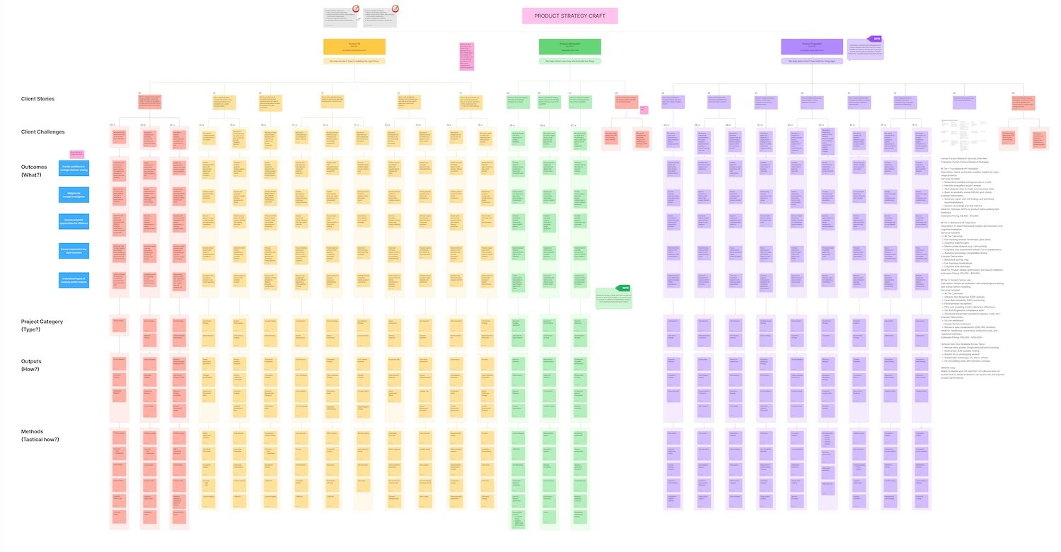 Scaling the Approach (Currently In Progress): After ELT mandated that all crafts develop value propositions using my framework, I designed and am currently facilitating workshops for senior leaders across Design, Industrial Design, Design Technology, and Development. Rather than simply hand off my research templates, I'm guiding each craft through the thinking process and helping them adapt the problem-first, outcome-focused approach to their unique capabilities and client challenges.Stewardship in Action: I designed these value propositions as durable infrastructure that would outlast leadership transitions and support the organization's growth. By documenting our rationale and decision-making process, I created artifacts that current and future leaders could build upon rather than recreate from scratch.