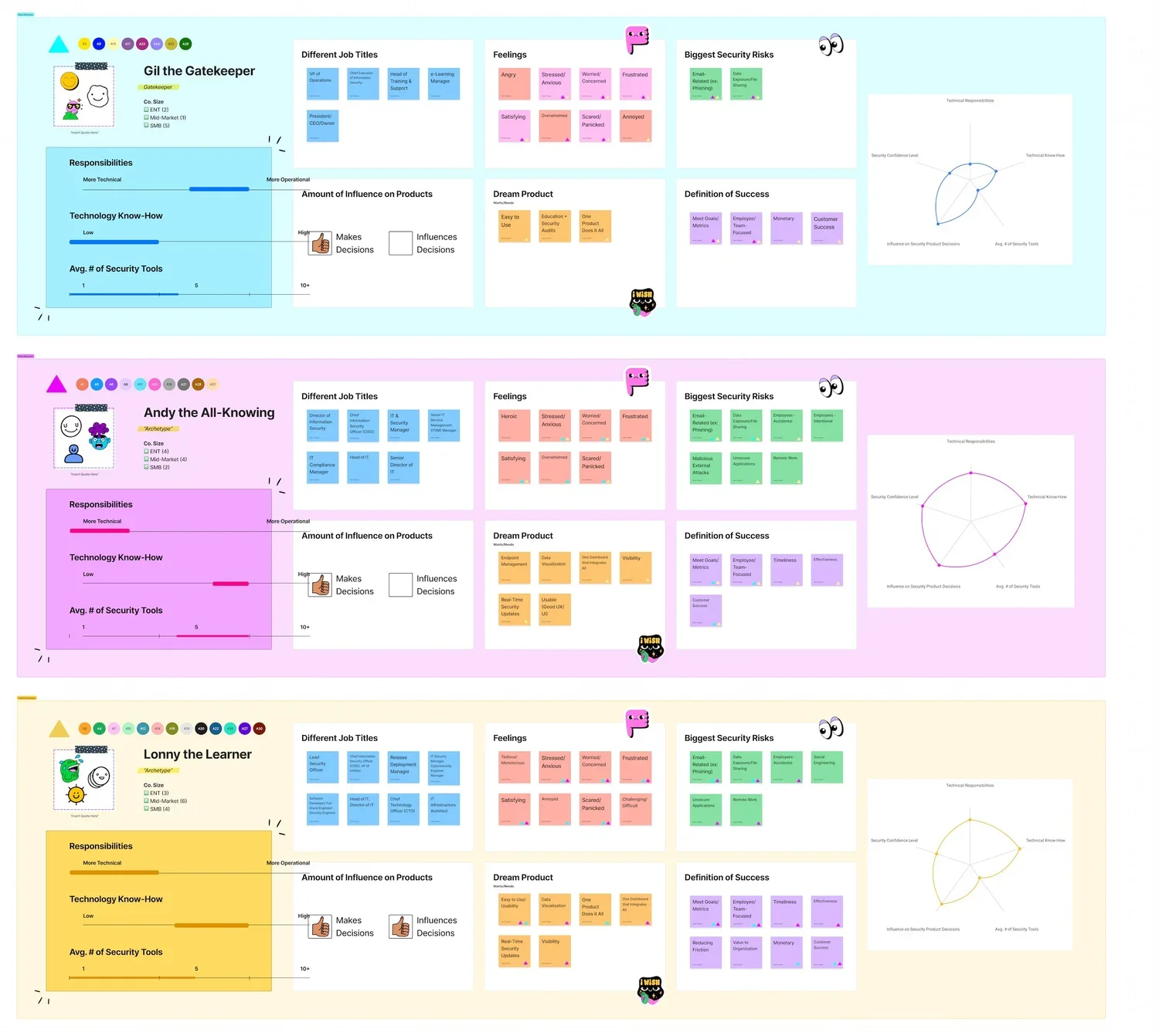 The diversity within each persona revealed that a one-size-fits-all value proposition wouldn't work. Product messaging needed to simultaneously communicate "enterprise-grade security" (for Andys who need to trust the tool) and "easy to implement and manage" (for Gils who feel overwhelmed). This insight directly informed the product roadmap and marketing strategy.