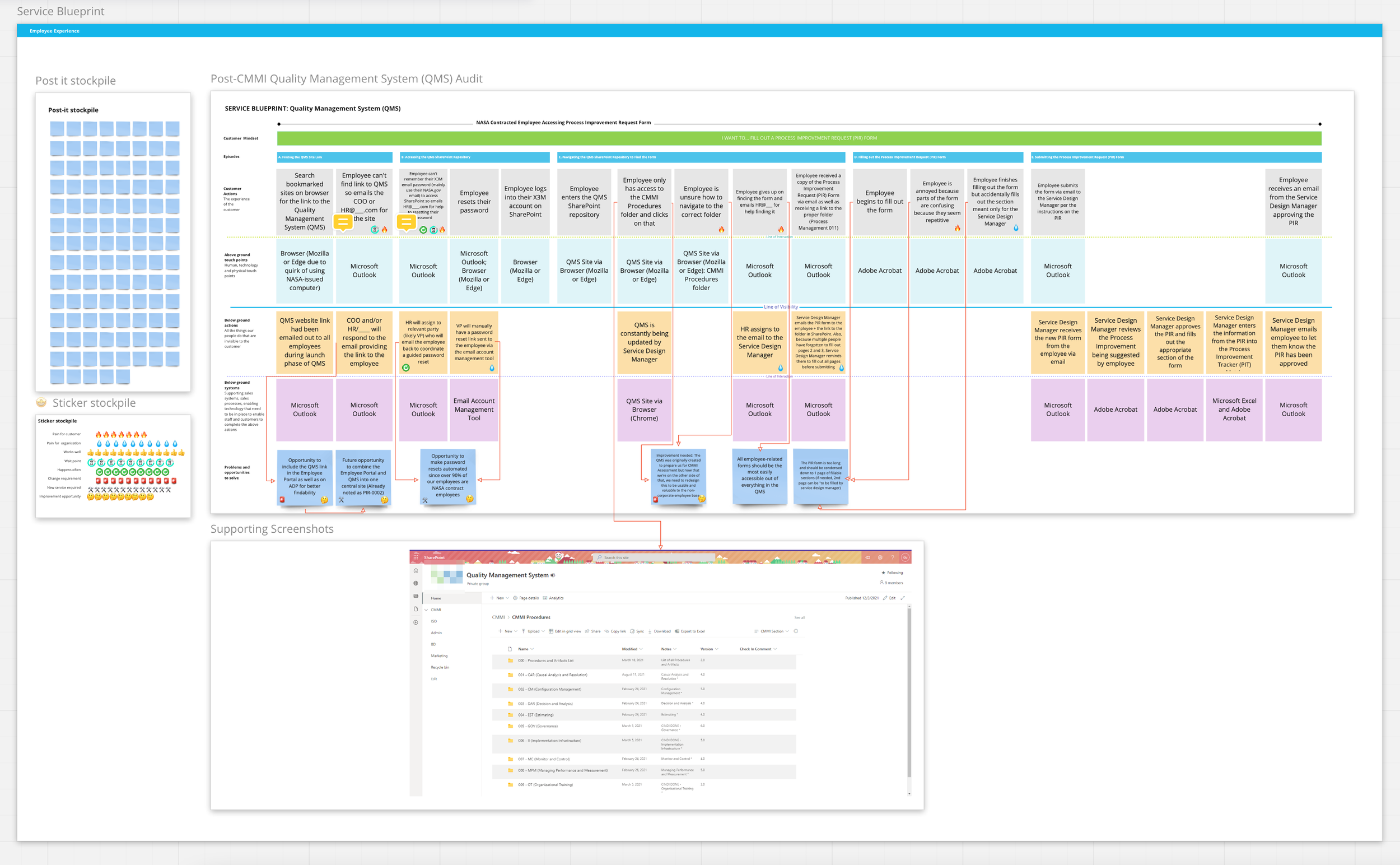 Despite the need for a quick SharePoint build at the start of the project, I devoted significant time to the Information Architecture (IA) of the Quality Management System (QMS) prototype. I created user flows, paper prototypes, and approached the QMS as a living product that could be continuously iterated upon.